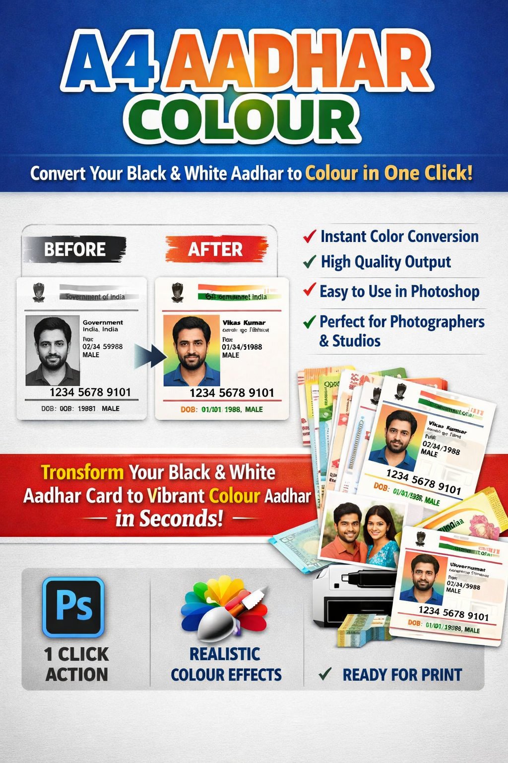 🪪 A4 Aadhaar Colour – Photoshop 1 Click Action